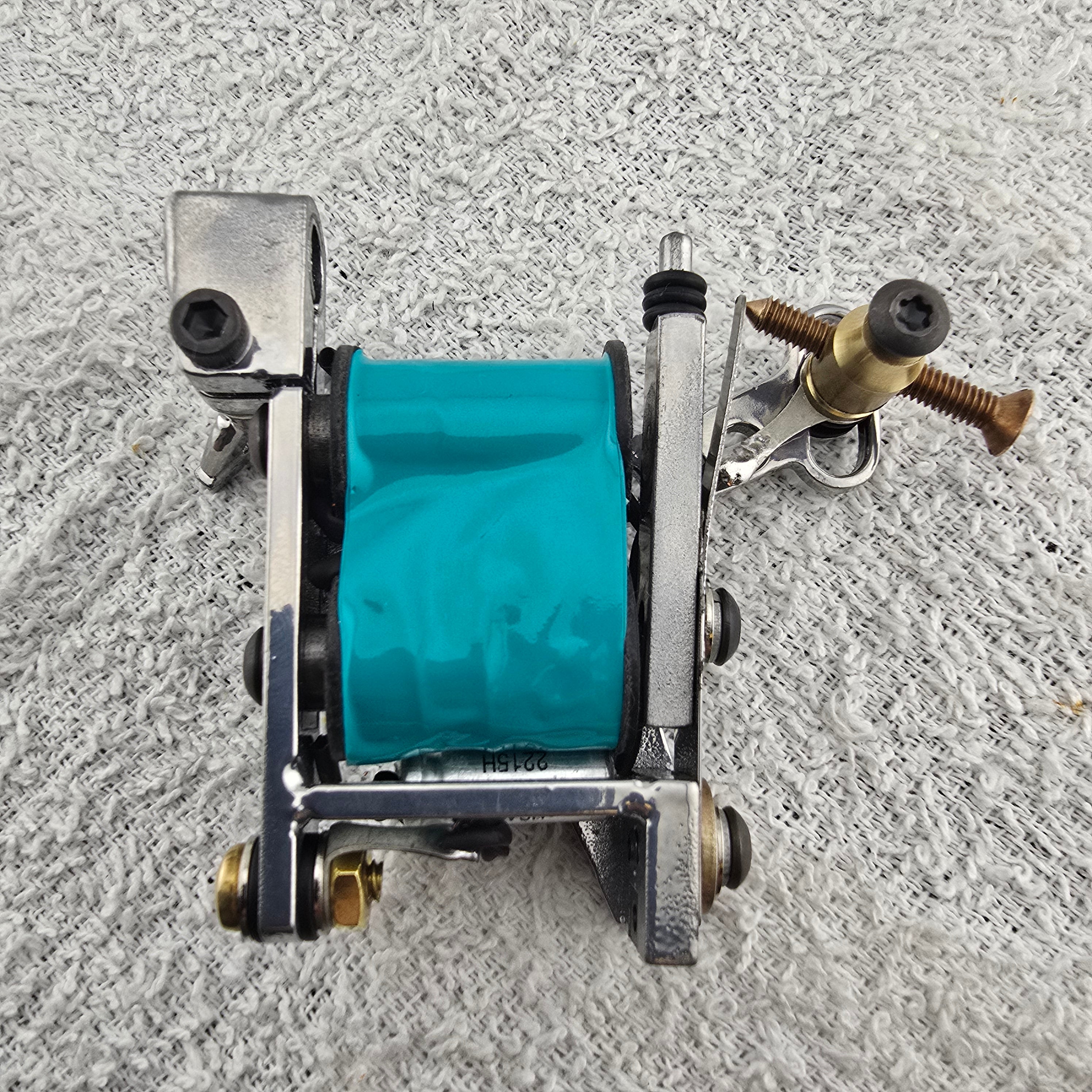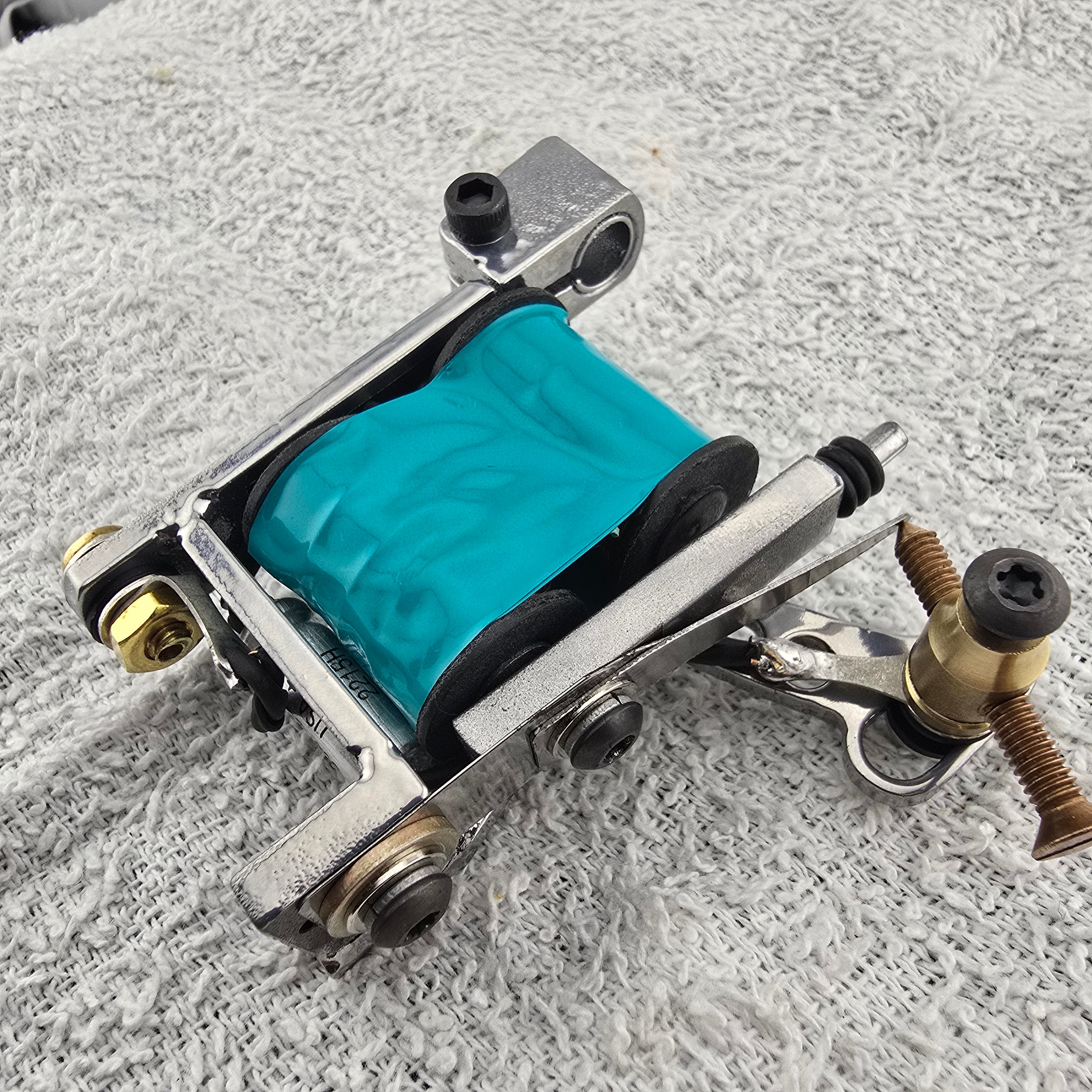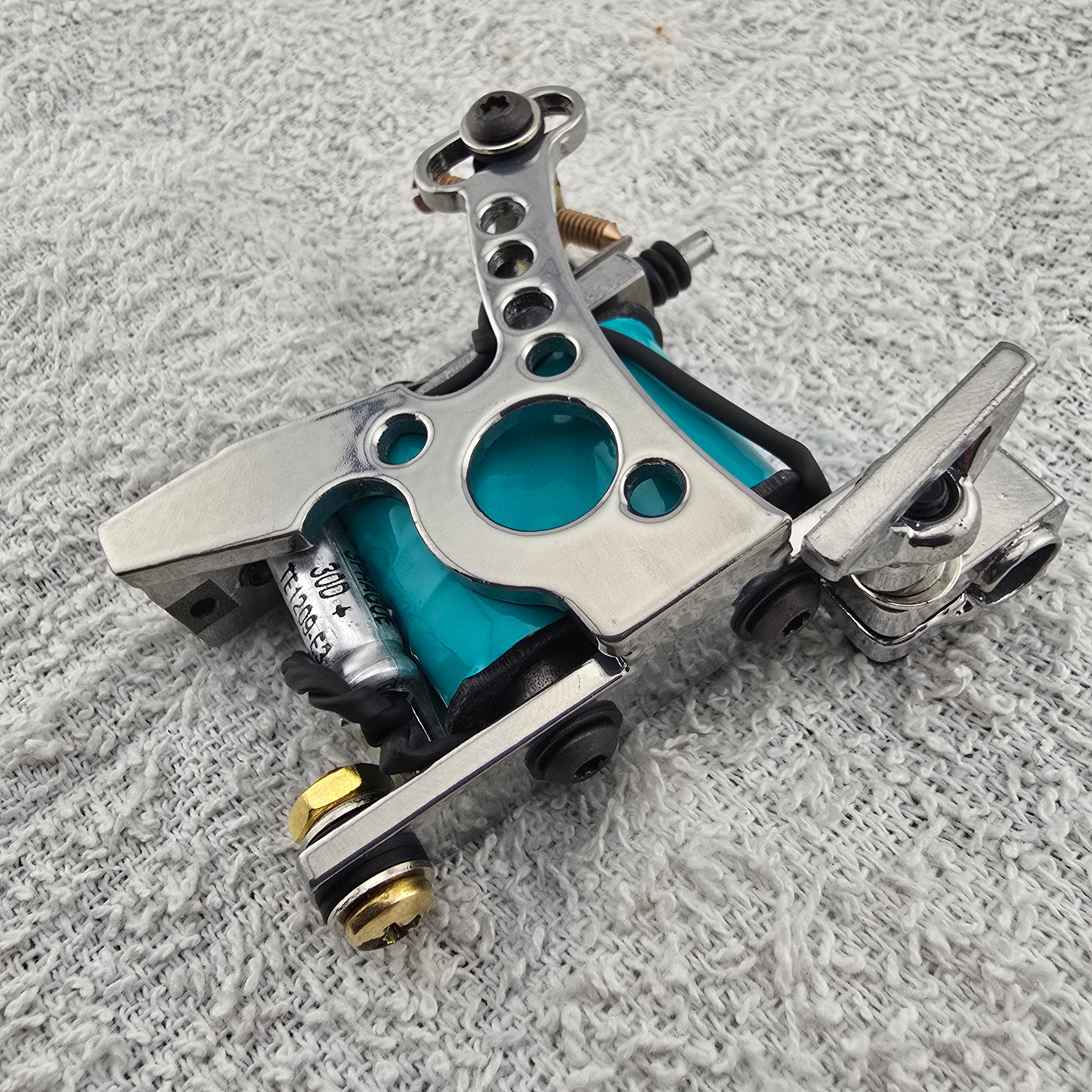 This is a handmade coil tattoo machine made for shading and coloring tattoos with tattoo ink and made for professional tattoo artists.