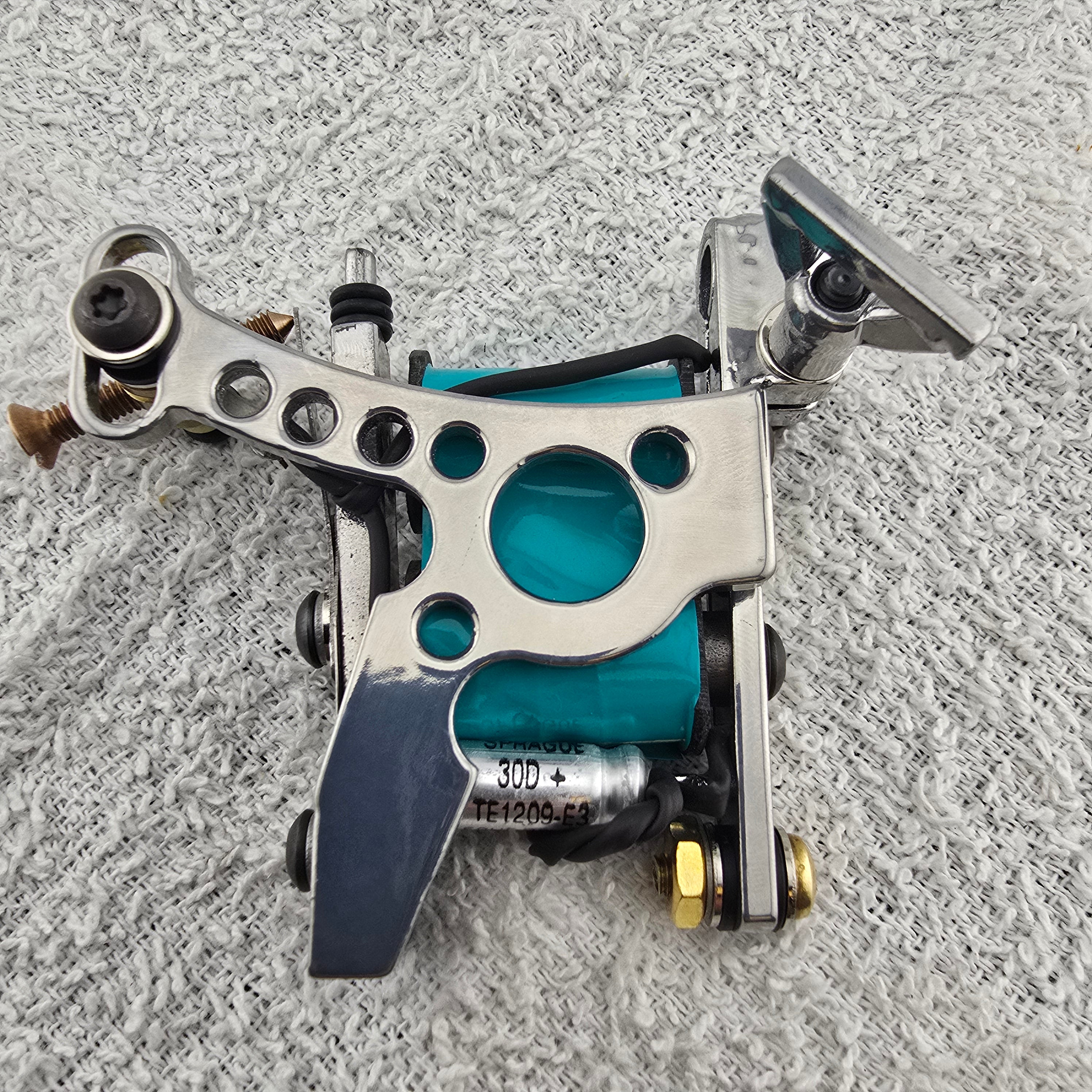 All tattoo machine parts are cut, drilled, milled, turned and finished by hand. Handmade by Greg DiGiacinto in Mays Landing New Jersey.