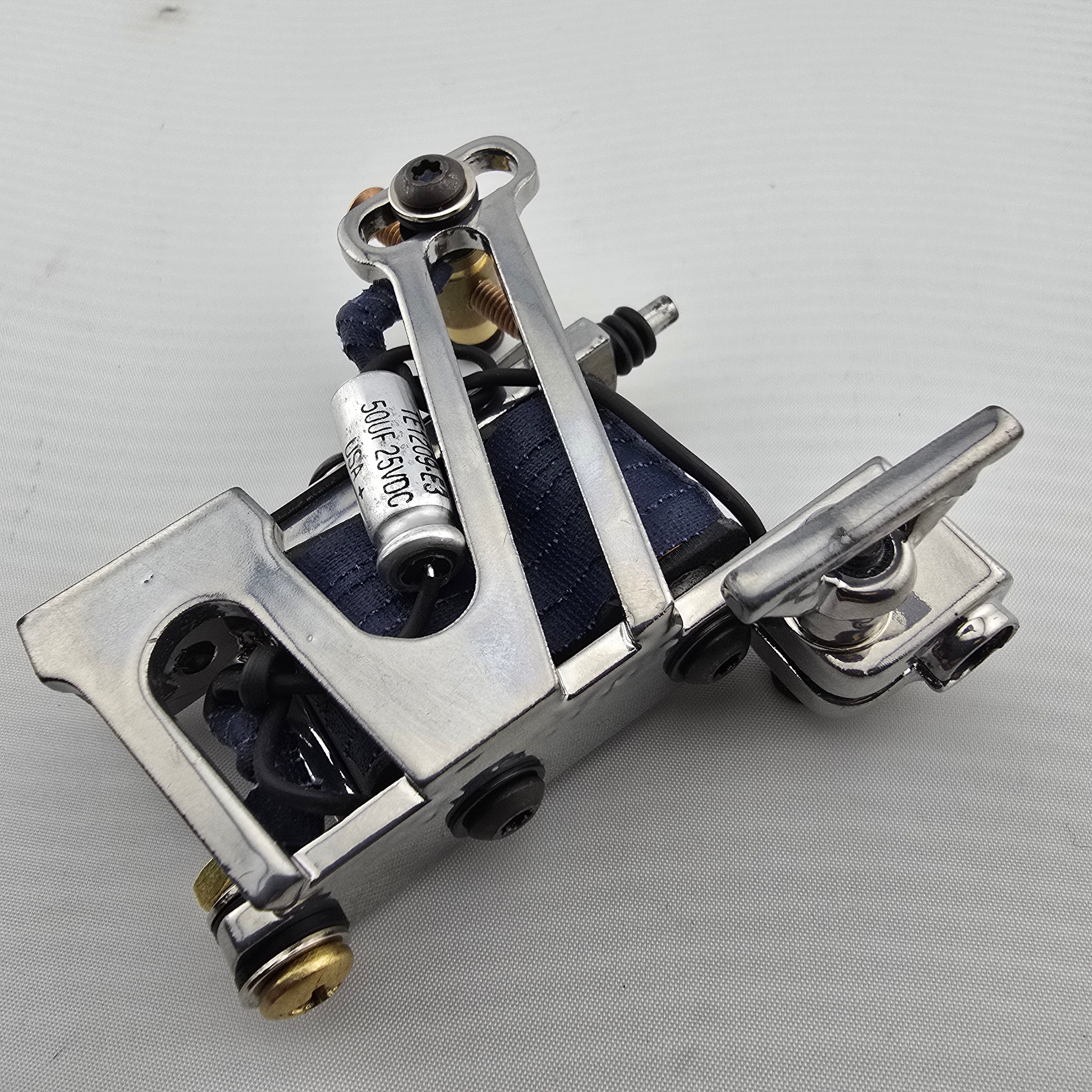 This is a handmade coil tattoo machine made for lining and making lines with tattoo ink made for professional tattoo artists. Black tattoo ink may be used for making lines.